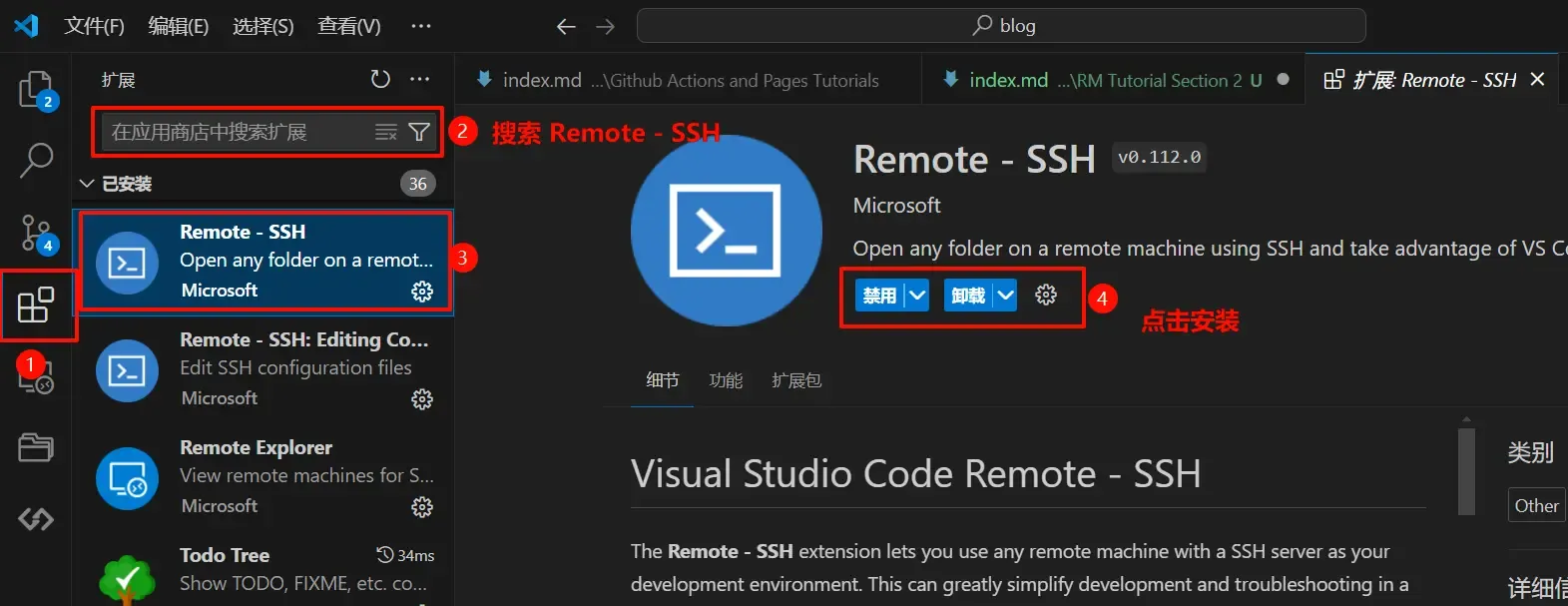 通过在 VSCode 的拓展栏进行搜索,可以很轻易地找到 VSCode 的 SSH 插件: